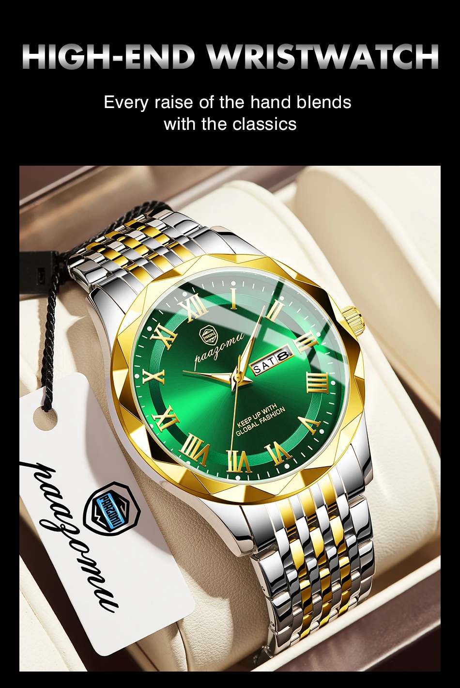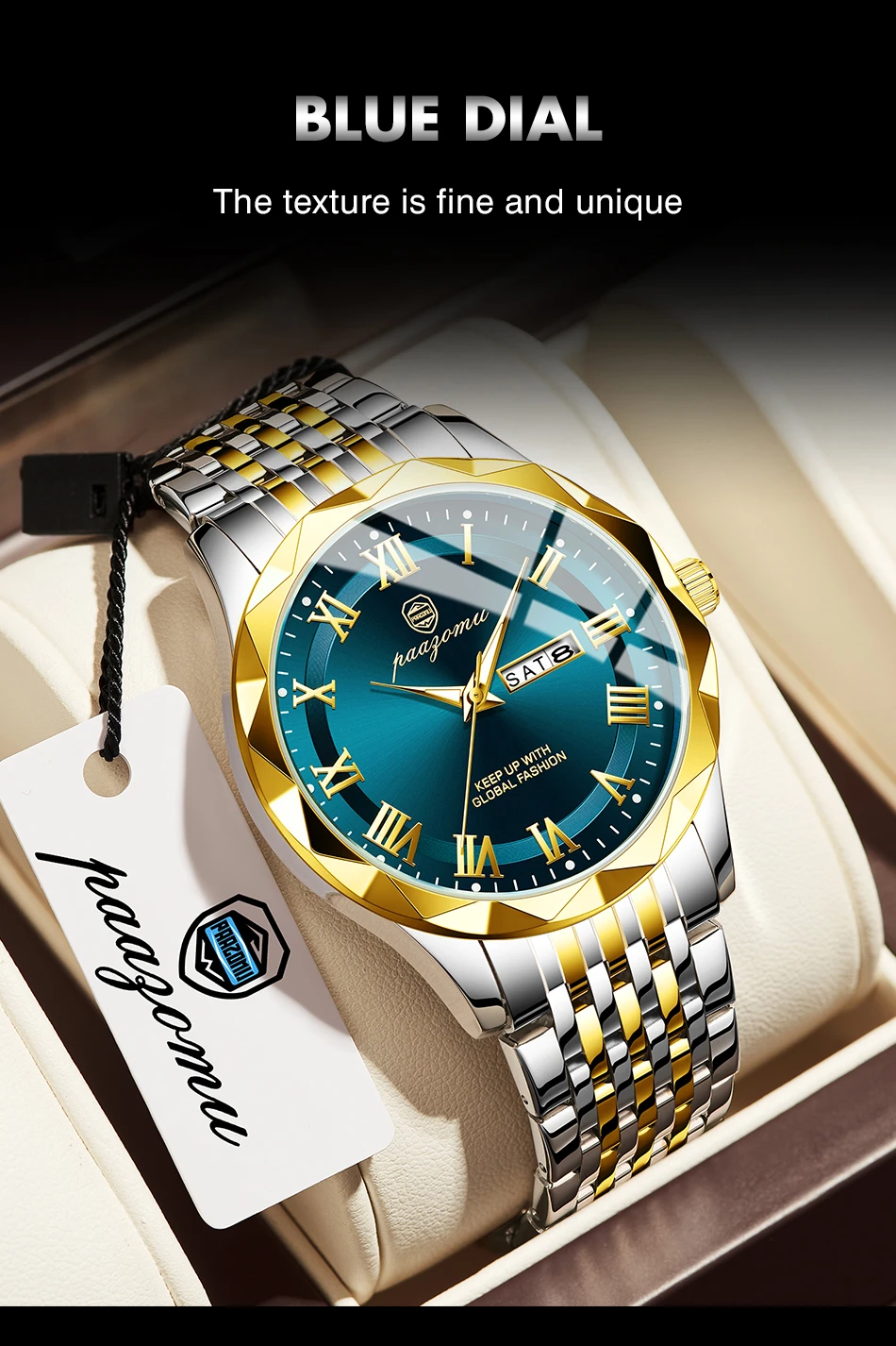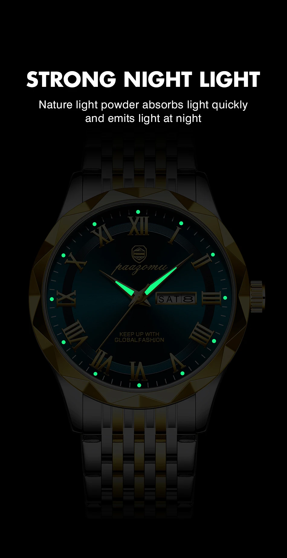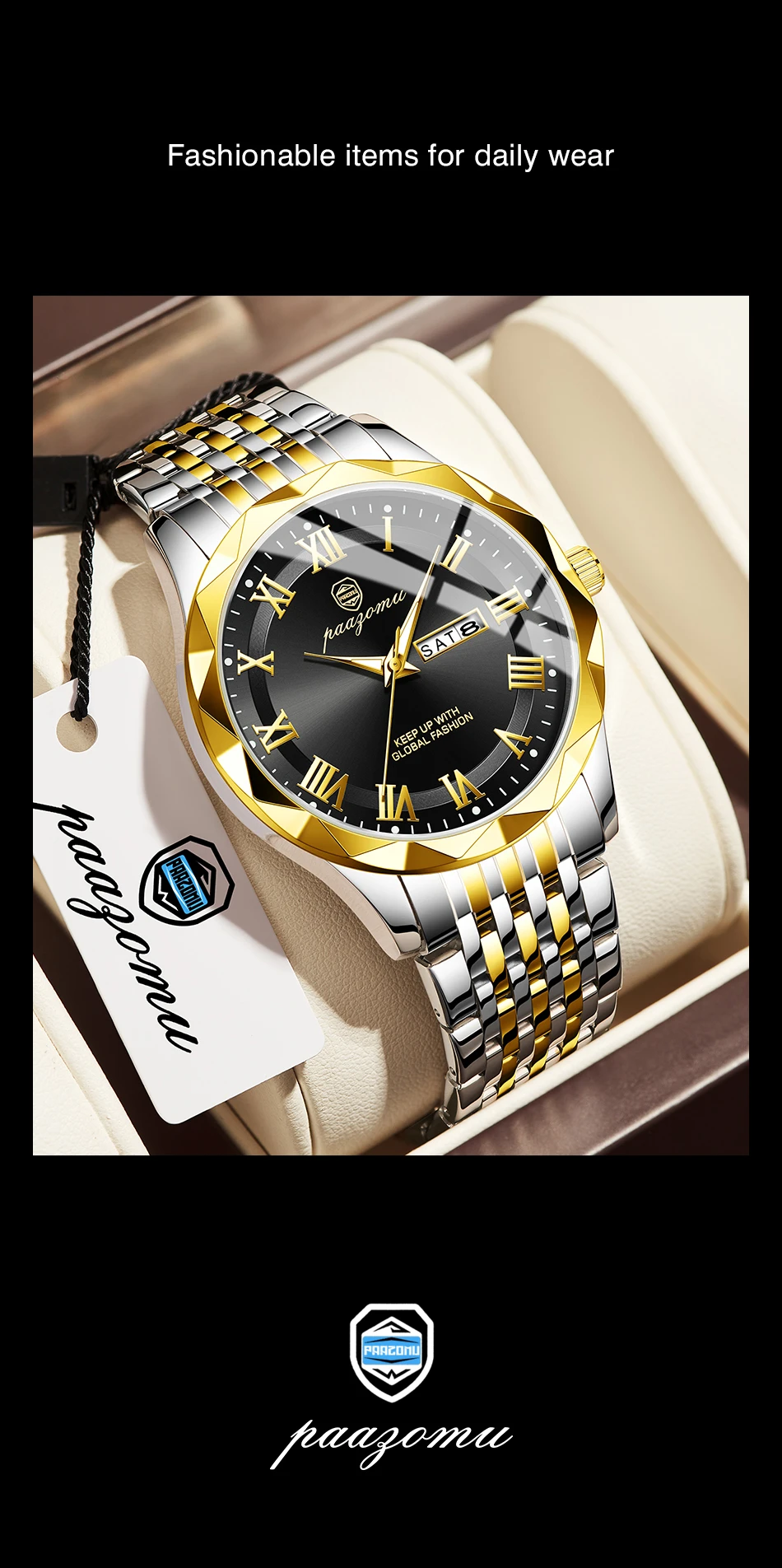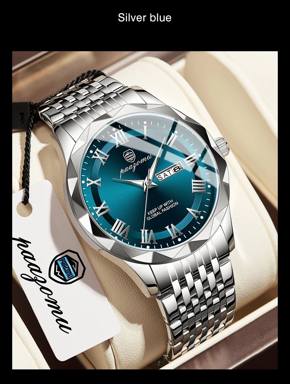 PAAZOMU Luxury Brand Men's Quartz Wristwatch Stainless Steel Waterproof Luminous Date Man Clock Square Business Watches For Men