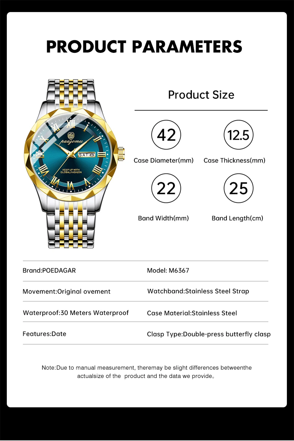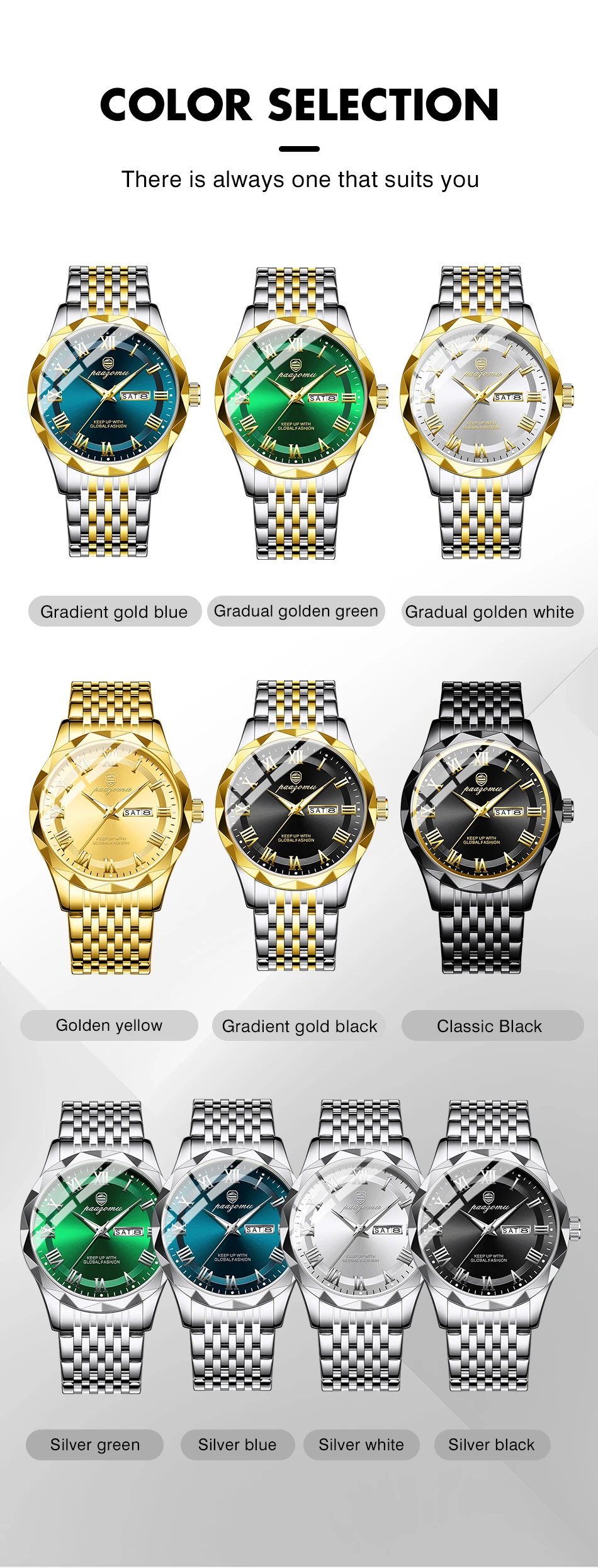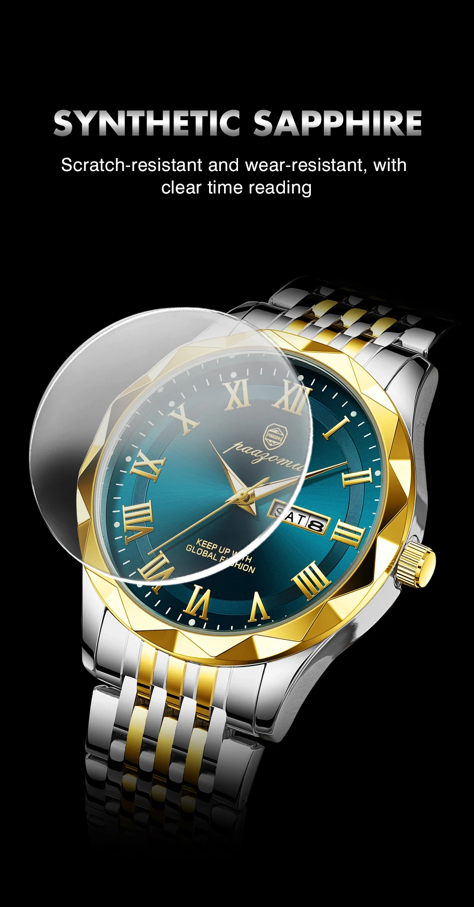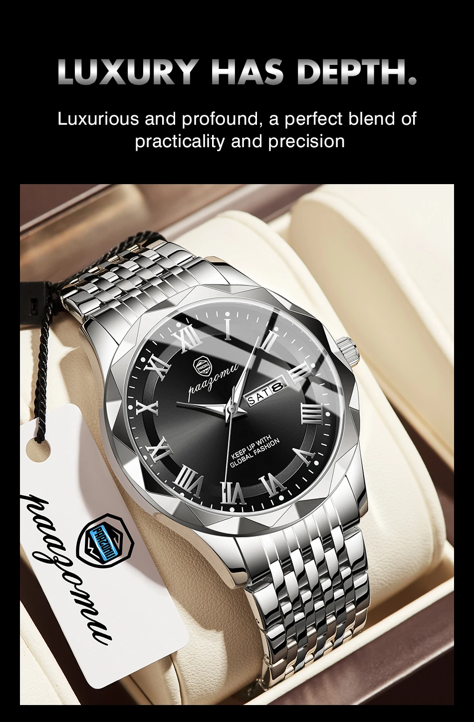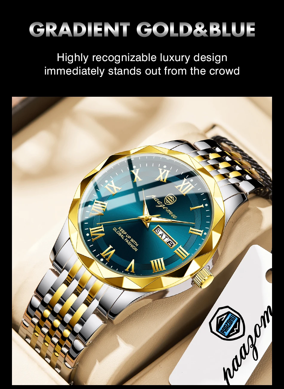 PAAZOMU Luxury Brand Men's Quartz Wristwatch Stainless Steel Waterproof Luminous Date Man Clock Square Business Watches For Men